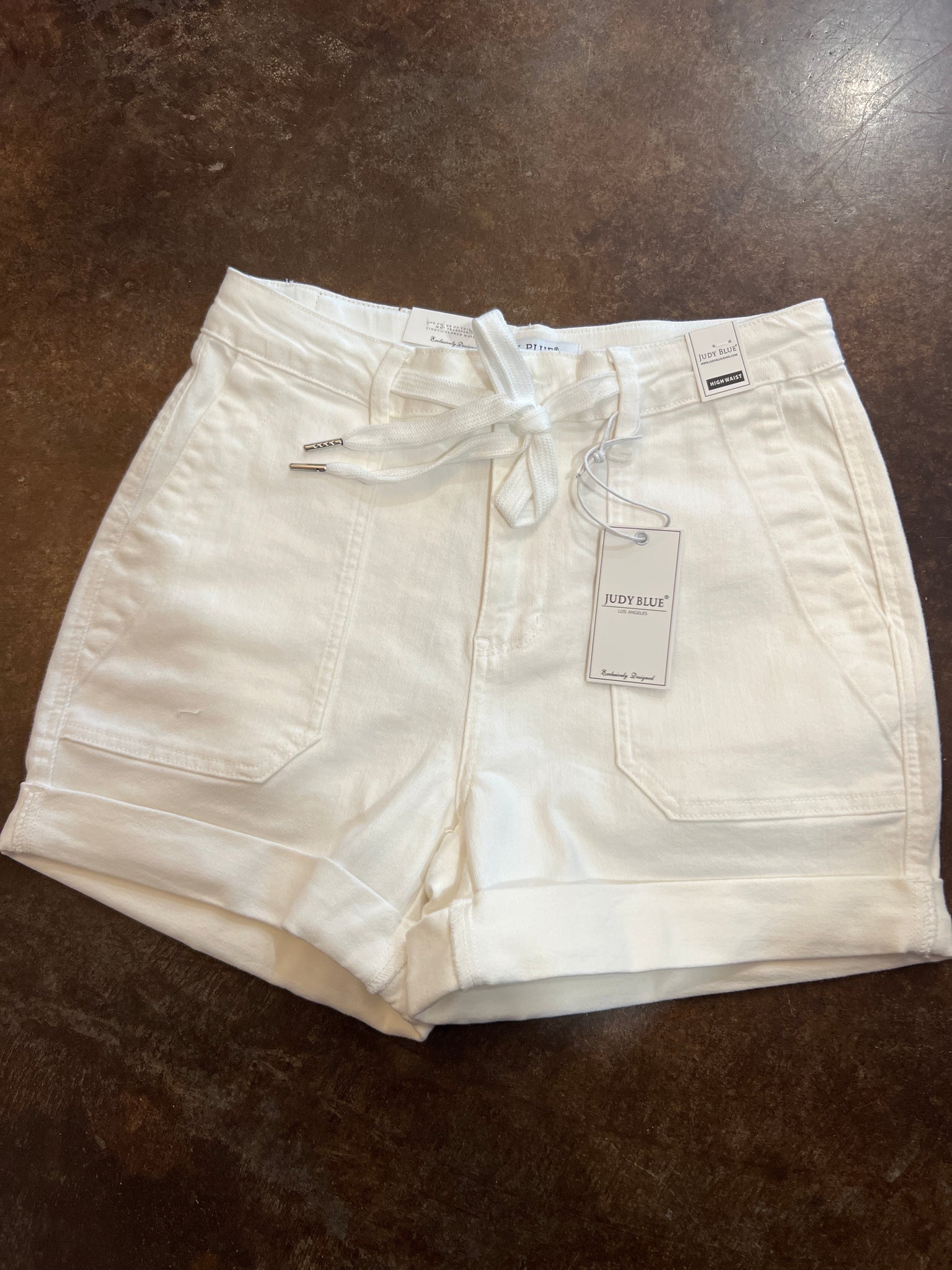 Subtle high rise * Soft, stretchy fabric * Cuffed hem * Functional drawstring waist with zipper/button * Deep pockets* Reg Rise (size M): 11"* Reg Inseam (size M)* Fabric: 94% Cotton, 5% Polyester, 1% Spandex
