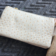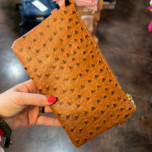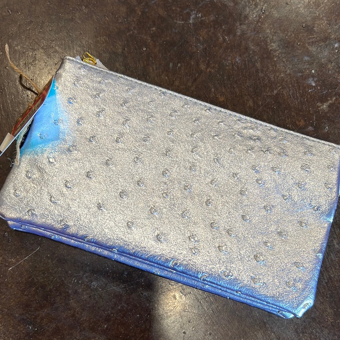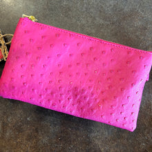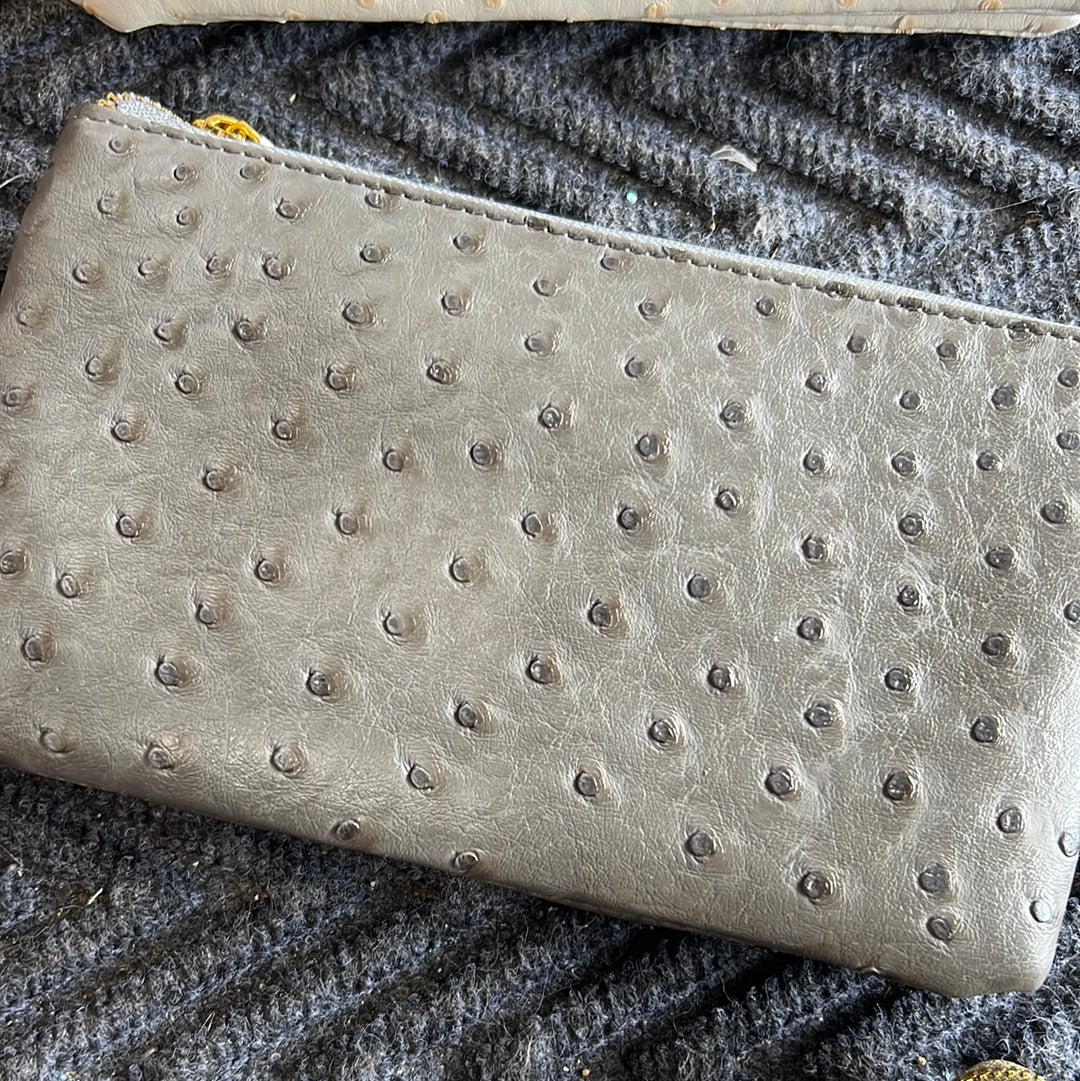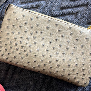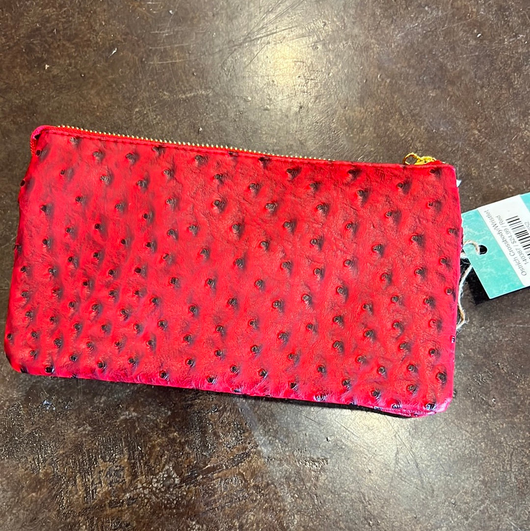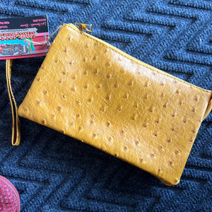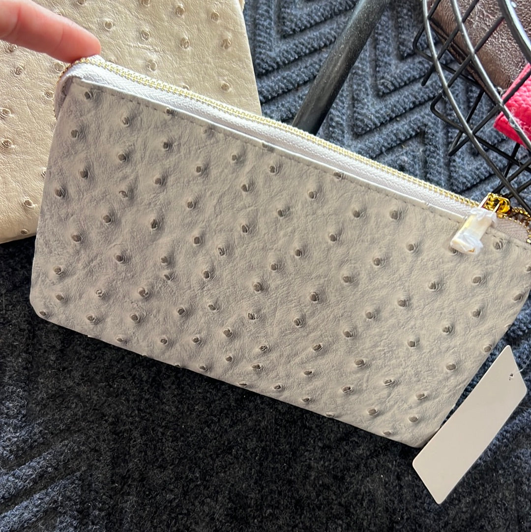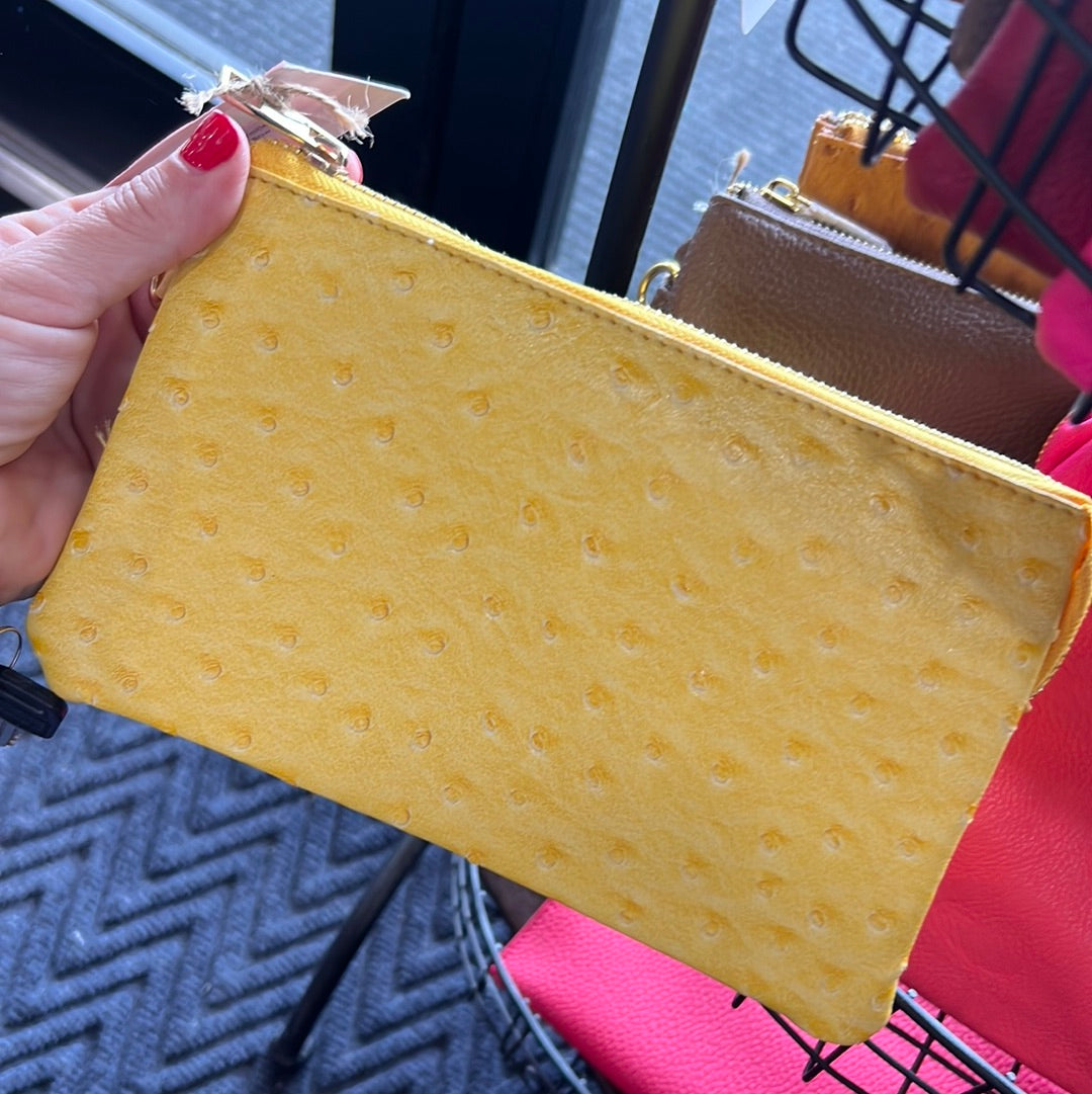 These faux ostrich skin crossbody also have attachment to make wristlet and are available in several colors!
