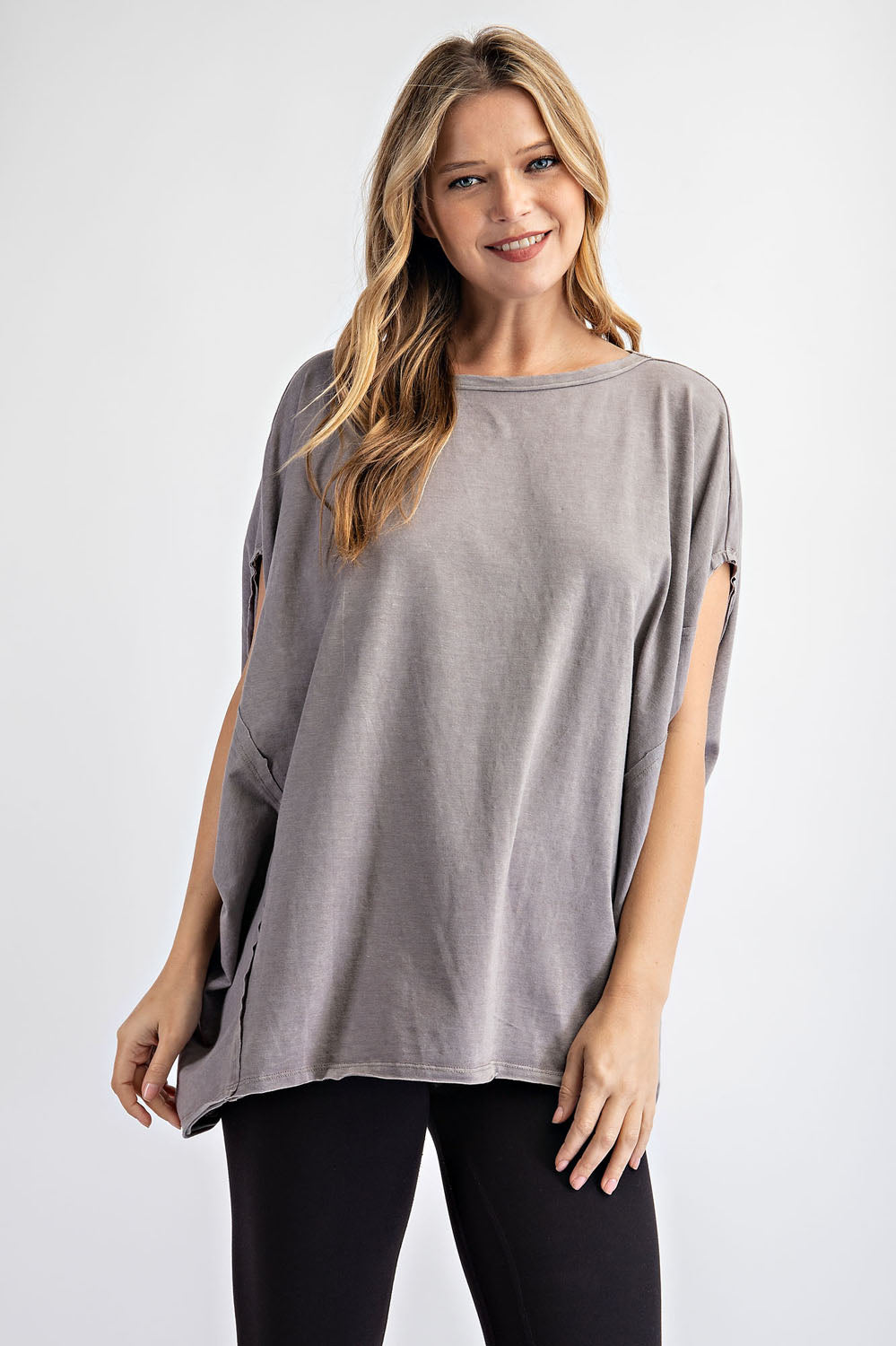 Wear this loose fit top with any leggings, joggers, or jeans.