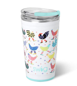 Party-Ready! 🥳🥤 Shake your tail feathers! 🐔 These colorful funky chickens decked out in cowgirl boots on a glitter white background will have everyone on the farm clucking Yeehaw!