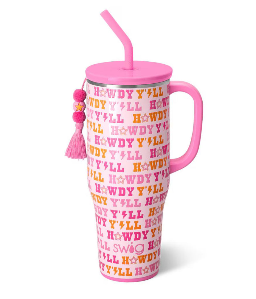 Mega sips, mega chill! 🧊 You'll be saying Howdy Y'all with this fun pink and orange rock star design.