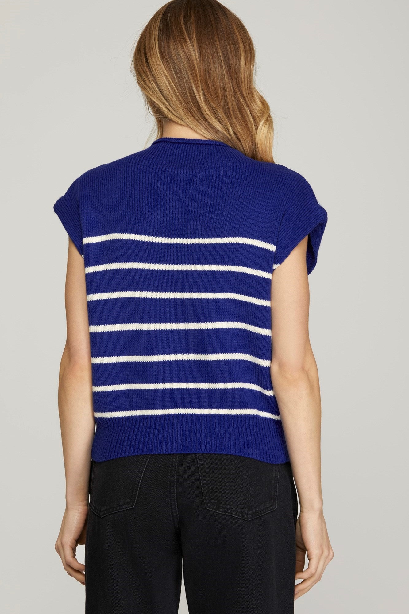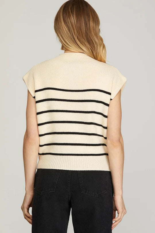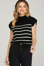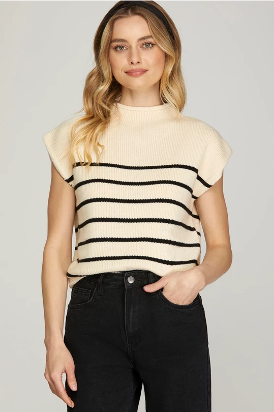 MOCK NECK STRIPED SWEATER TOPMODEL IS 5'8" AND MODEL WEARING SIZE SMALL