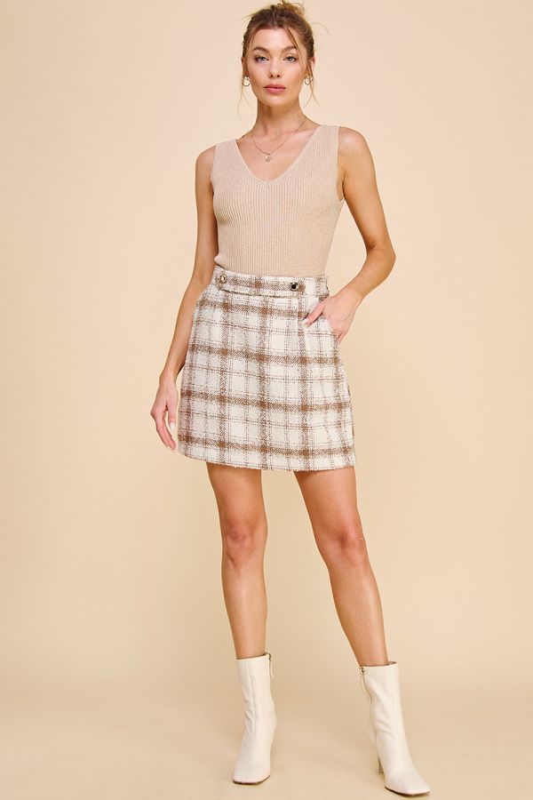 Plaid Boucle Skirt with Pockets, 100% Poly