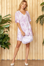 Fun printed dress features v neckline, flowy bodice with full lining. Woven, non sheer.