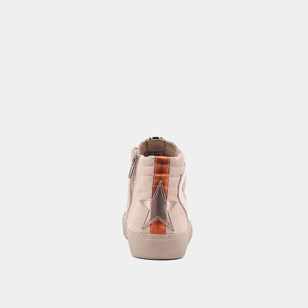 BEIGE-Elevate your sneaker game with the ROONEY in soft beige suede. This neutral beauty is accented by sleek white and metallic faux leather details for a subtle yet stylish contrast. The signature star on the back and comfy fit make these sneakers perfect for both off-duty days and on-the-go adventures. Blending comfort with trend-setting design, the Rooney sneakers are a must-have for any wardrobe!
